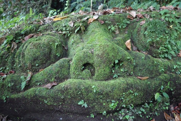 Zum Beispiel im riesigen Garten des Resorts. Er führt bis hinunter zum Fluss. Wir folgen dem Pfad und entdecken sogar eine heilige Quelle. Sie wird von einer moosbewachsenen, imposanten Steinfigur bewacht.