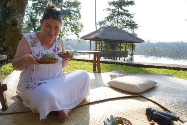 Im Musikpavillon erhalten zwei Mädchen in traditionellen Gewändern von einer Tanzlehrerin Unterricht. Wir lauschen der exotischen Musik, nippen am Tee und geniessen dazu süssen Kuchen. Die Mädchen aus dem Dorf erhalten im Amandari Resort kostenlos balinesischen Tanzunterricht. So bleibt das kulturelle Erbe auch die kommenden Generationen erhalten.