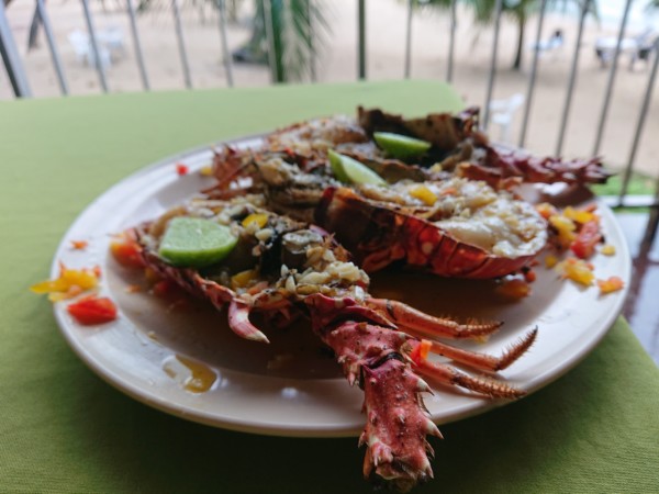 Köstlicher Hummer in der Beach Bar am Frenchman’s Cove Strand.