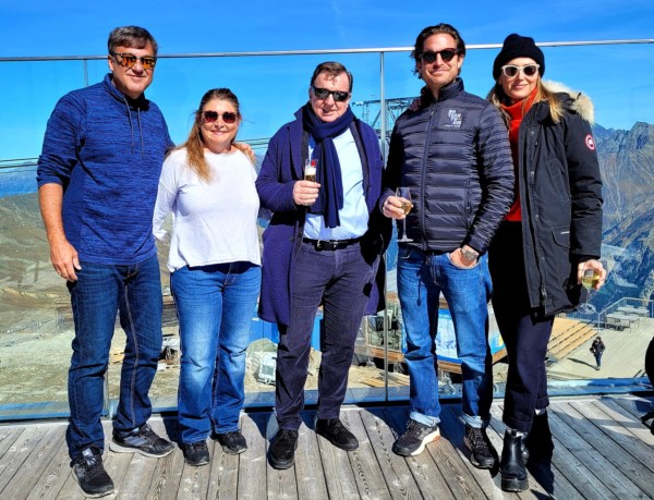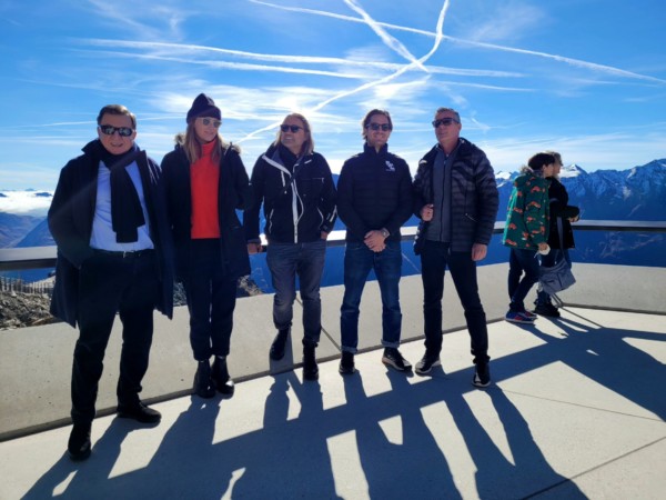 Auf der Plaza erwartet uns das hochkarätige Team, dass für dieses weltweit einzigartige Erlebnis verantwortlich ist. Jakob Falkner, der Geschäftsführer und Mitinhaber der Bergbahnen Sölden, der Architekt Johann Obermoser und Andreas Zunt, der Leiter der James-Bond-Erlebniswelt 007 ELEMENTS. Sogar Neal Callow und seine Frau Heather fanden den Weg nach Sölden. Der James Bond Art Director arbeitete mit Daniel Craig in «Casino Royal», «Skyfall», «Spectre» und im aktuellen «No Time To Die» zusammen.
