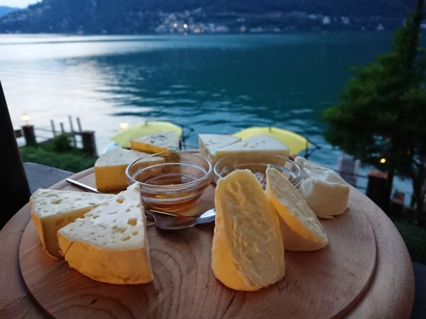 Abends wartet dann ein ganz spezieller Ausflug auf mich! Von Anfang Juni bis Ende August findet am Donnerstag, Freitag und Samstag jeweils die Grotti Rundfahrt statt. Um 19.20 Uhr legt das Schiff «Morcote» am Hafen von Lugano ab und steuert in den Sonnenuntergang zuerst nach Paradiso. Die nächsten Stationen sind San Rocco, Caprino, das Grotto Pescatori und schliesslich meine Haltestelle Cantine di Gandria, wo ich bereits im Grotto Descanso erwartet werde. Bis mich das Schiff um 22.03 Uhr wieder abholt, darf ich die hausgemachten Tessiner Spezialitäten ausgiebig kosten. Danach geht es zufrieden und vor allem mit einem reichlich gefüllten Magen wieder zurück nach Lugano. Nur 15 Schweizer Franken kostet übrigens das Schiffsbillett für die abendliche Rundfahrt und die kann ich wirklich sehr empfehlen! Im nächsten Sommer muss ich das unbedingt nochmals machen!