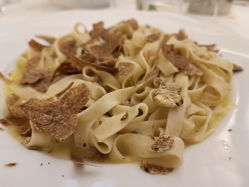 Ausgezeichnete Trüffel-Pasta in der l’Osteria il Giardino di Piero in Sansepolcro.