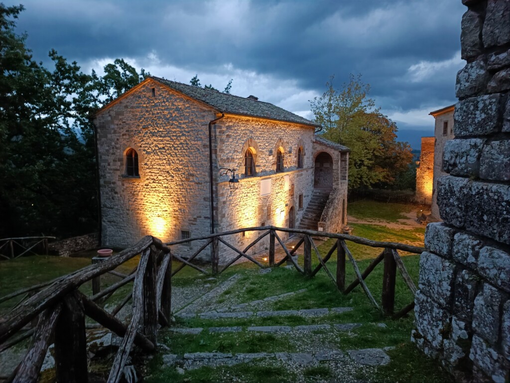 Das Geburtshaus von Michelangelo Buonarroti in Caprese Michelangelo im Abendlicht.