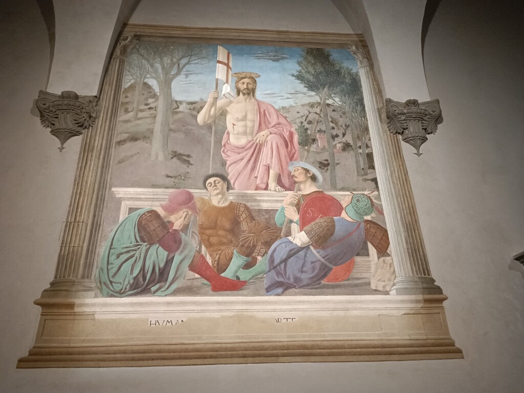 Das Fresko mit der Auferstehung von Jesus Christus ist einzigartig Seine Präsenz mit dem Landschaftsbild im Hintergrund, welches die verschiedenen Jahreszeiten darstellt. Der Maler soll sich als schlafender Soldat unter dem Sarkophag verewigt haben.
