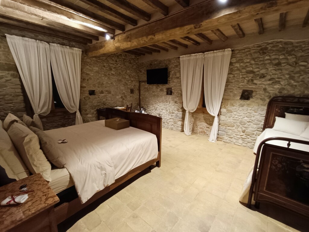 Mit einem vollen Bauch und weinseliger Müdigkeit fallen wir in die gemütlichen Betten der rustikalen Zimmer im nahegelegenen Agriturismo. Was uns wohl am nächsten Tag erwarten wird. Abgesehen vom köstlichen Frühstück und einer Olivenöl-Degustation.