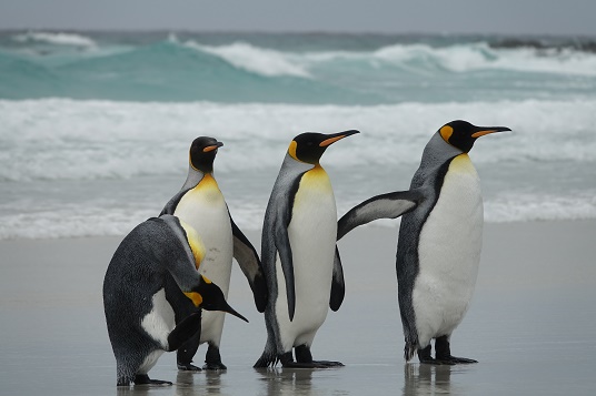 Friedlich leben die bis einen Meter grossen Königspinguine an der Küste von Volunteer Point auf den Falkland Inseln im südlichsten Siedlungsrevier ausserhalb der Antarktis zusammen mit Magellan- und Esels-Pinguinen. Während eines 4×4-Abenteuer-Ausflugs haben wir die Tiere begeistert beobachten können! Was für ein Erlebnis!